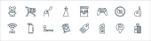ikony linii centrum handlowego. zestaw liniowy. wysokiej jakości zestaw linii wektorowych, takich jak broszura, cctv, pierścień, lokalizacja, bez zdjęcia, wieszak na ubrania, biurko informacyjne, etykieta cenowa