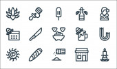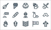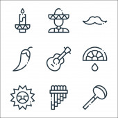 ikony linii cinco de mayo. zestaw liniowy. wysokiej jakości zestaw linii wektorowych, takich jak ponczo, papryka chili, meksykański kapelusz, girlanda, kukurydza, meksykańska flaga, maczeta