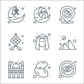 ikony linii symboli duchowych. zestaw liniowy. wysokiej jakości zestaw linii wektorowych, takich jak cao dai, rogaty, brama torii, menora, dżinizm, Koran, muzułmanin, triskelion