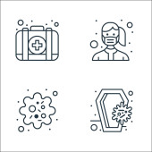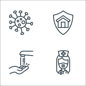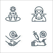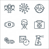 ikony nowego wirusa pandemii. zestaw liniowy. wysokiej jakości zestaw linii wektorowych, takich jak mycie rąk, ból gardła, koronawirus