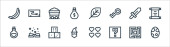 ikony linii kina. zestaw liniowy. wysokiej jakości zestaw linii wektorowych, takich jak makijaż, telefon komórkowy, napisy, soda, vhs, reflektor, kino, kamera