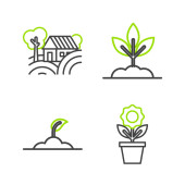 ikony inteligentnych linii rolnych. zestaw liniowy. wysokiej jakości zestaw linii wektorowych, takich jak roślina, światło słoneczne, dom