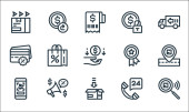 ikony linii biznesowych i finansowych. zestaw liniowy. zestaw linii wektorowych jakości, takich jak podatki, dochody, skale, sprawozdanie, fundusze,