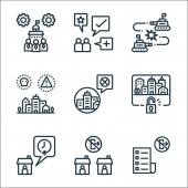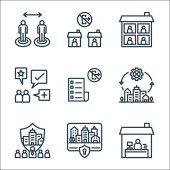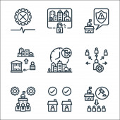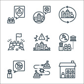 ikony linii blokady. zestaw liniowy. wysokiej jakości zestaw linii wektorowych, takich jak zamknięcie, krytyczne, ochrona, zabronione, obszar, przystanek, miasto, siła