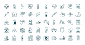 ikony linii narzędzi medycznych. zestaw liniowy. wysokiej jakości zestaw linii wektorowych, takich jak infuzja, waga, wezwanie alarmowe, zestaw ratunkowy, DNA, rentgen, tlen, kolba, fonendoskop