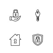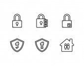 ikony linii interfejsu. zestaw liniowy. zestaw linii wektorowych jakości, takich jak klucz, lustro, zamek