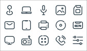 Internet rzeczy ikony linii. zestaw liniowy. wysokiej jakości zestaw linii wektorowych, takich jak inteligentny licznik, sterowanie domem, inteligentna lodówka, tracker, inteligentna temperatura, laptop, światło uliczne, dzwon, okulary