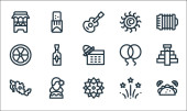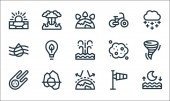 naturalne ikony linii. zestaw liniowy. wysokiej jakości zestaw linii wektorowych, takich jak łóżko trzcinowe, wschód słońca, parasol, płatki śniegu, chmura, grzyby, kwiat, księżyc, ogrodzenie