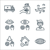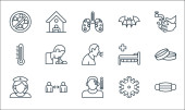 ikony linii autoizolacji. zestaw liniowy. wysokiej jakości zestaw linii wektorowych, takich jak biuro domowe, zagrożenie biologiczne, kwarantanna, sypialnia, bez grupy, tabletki, data, brak rolki toalety, środek dezynfekujący