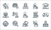 ikony linii autoizolacji. zestaw liniowy. wysokiej jakości zestaw linii wektorowych, takich jak kwarantanna, szalony, biuro domowe, pobyt w domu, wirus, zagrożenie biologiczne, kwarantanna, zachować odległość, ciężarówka spożywcza
