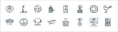 ikony linii nadziei. zestaw liniowy. wysokiej jakości zestaw linii wektorowych, takich jak wstążka, wiadomość w butelce, tęcza, balony, oddawanie krwi, kadzidło, świat, różaniec