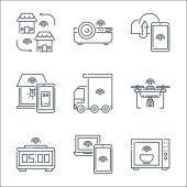 Internet rzeczy ikony linii. zestaw liniowy. wysokiej jakości zestaw linii wektorowych, takich jak alarm, dron, smarthome