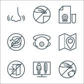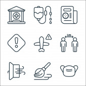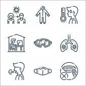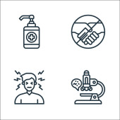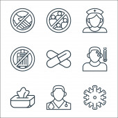 zatrzymać ikony linii wirusów. zestaw liniowy. wysokiej jakości zestaw linii wektorowych, takich jak probówka, test, lekarz, maska, nos, ból głowy, usta, wąż
