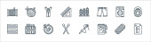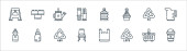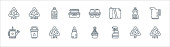 ikony linii czyszczącej. zestaw liniowy. wysokiej jakości zestaw linii wektorowych, takich jak mokra podłoga, wycieraczki, czyste naczynia, kran, spray, wąż wodny, pokojówka, wybielacz