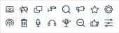 ikony telewizji. zestaw liniowy. wysokiej jakości zestaw linii wektorowych, takich jak mikrofon, hasło, satelita, głośnik, karta pamięci, satelita, kabel jack, głośność