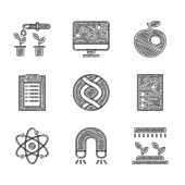 ikony linii energii jądrowej. zestaw liniowy. zestaw linii wektorowych jakości, takich jak uran, łódź podwodna, atom