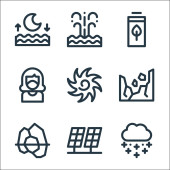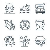 ikony linii zmian klimatycznych. zestaw liniowy. wysokiej jakości zestaw linii wektorowych, takich jak energia wiatru, wiatr, susza
