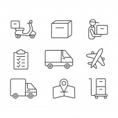 ikony linii ubezpieczeniowej. zestaw liniowy. zestaw linii wektorowych jakości, takich jak samolot, kurier, ubezpieczenie rodzinne