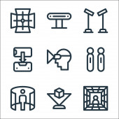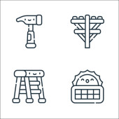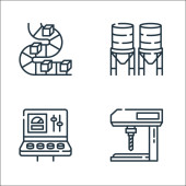 ikony linii procesów przemysłowych. zestaw liniowy. wysokiej jakości zestaw linii wektorowych, takich jak projekt, wiertarka, maska ochronna