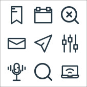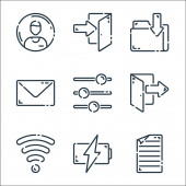 ikony linii interfejsu użytkownika. zestaw liniowy. zestaw linii wektorowych jakości, takich jak nawigacja, dół, wifi