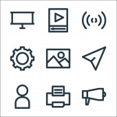 Zdjęcie "ikony linii interfejsu użytkownika. zestaw liniowy. zestaw linii wektorowych jakości, takich jak nawigacja, dół, wifi" może być wykorzystywane do celów osobistych i komercyjnych zgodnie z warunkami zakupionej licencji Royalty-free. Obraz jest dostępny do pobrania w jakości wysokiej rozdzielczości do 5760x3840.