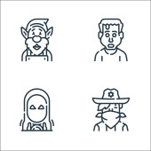 Zdjęcie "fantastyczne postacie linii ikon. zestaw liniowy. wysokiej jakości zestaw linii wektorowych, takich jak cleopatra, wirtualne okulary, spartan" może być wykorzystywane do celów osobistych i komercyjnych zgodnie z warunkami zakupionej licencji Royalty-free. Obraz jest dostępny do pobrania w jakości wysokiej rozdzielczości do 5760x3840.