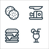 ikony linii żywności. zestaw liniowy. wysokiej jakości zestaw linii wektorowych, takich jak hamburger, lody, szkło