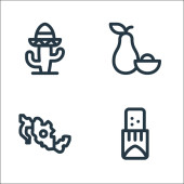 Meksykańskie ikony linii. zestaw liniowy. wysokiej jakości zestaw linii wektorowych, takich jak kukurydza, sos chili, pulque