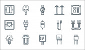 elektronarzędzia i ikony linii. zestaw liniowy. wysokiej jakości zestaw linii wektorowych, takich jak tester, listwa zasilająca, striptiz