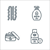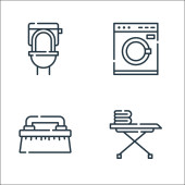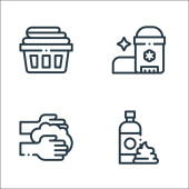 ikony higieniczne rutynowych linii. zestaw liniowy. wysokiej jakości zestaw linii wektorowych, takich jak ręcznik, gumowe rękawice, pralka