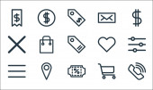 ikony linii handlowej. zestaw liniowy. zestaw linii wektorowych jakości, takich jak dostawa, mapa, rabat, punkt usługowy, koszyk, voucher, zakupy, portfel, wyszukiwanie