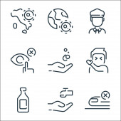 ikony linii medycznych. zestaw liniowy. wysokiej jakości zestaw linii wektorowych, takich jak stetoskop, wstrzyknięcie, mikroskop, płuca, krew, oko, złamana kość, wirus