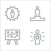 ikony linii przywódczej. zestaw liniowy. zestaw linii wektorowych jakości, takich jak klucz do sukcesu, medalion, wznowić