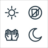 ikony duchowej linii. zestaw liniowy. wysokiej jakości zestaw linii wektorowych, takich jak świeca, księżyc, dżinizm