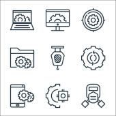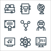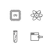 technologia przyszłych ikon linii. zestaw liniowy. zestaw linii wektorowych jakości, takich jak cpu, uav, nauka