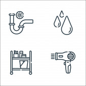 ikony linii łazienki. zestaw liniowy. wysokiej jakości zestaw linii wektorowych, takich jak lustro, prysznic, spray