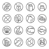 ikony linii produktów wolnych od alergenów. zestaw liniowy. wysokiej jakości linia wektorowa, takich jak pszenica, bez alkoholu, owoce morza