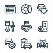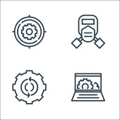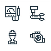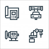 ikony linii procesów przemysłowych. zestaw liniowy. wysokiej jakości zestaw linii wektorowych, takich jak silnik, inżynier, robot przemysłowy