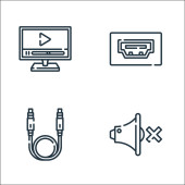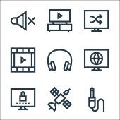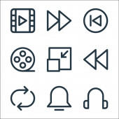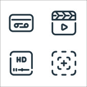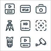 ikony projektów graficznych. zestaw liniowy. wysokiej jakości zestaw linii wektorowych, takich jak wideo, klapa, gumka