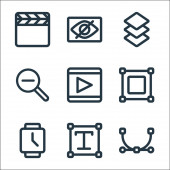 Zdjęcie "ikony projektów graficznych. zestaw liniowy. wysokiej jakości zestaw linii wektorowych, takich jak wideo, klapa, gumka" może być wykorzystywane do celów osobistych i komercyjnych zgodnie z warunkami zakupionej licencji Royalty-free. Obraz jest dostępny do pobrania w jakości wysokiej rozdzielczości do 5760x3840.