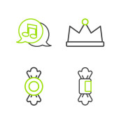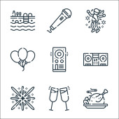 ikony urodzinowe. zestaw liniowy. wysokiej jakości zestaw linii wektorowych, takich jak cukierki, korona, muzyka