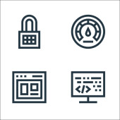 ikony linii zabezpieczeń internetowych. zestaw liniowy. zestaw linii wektorowych jakości, takich jak wirus, konto prywatne,