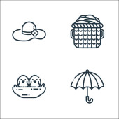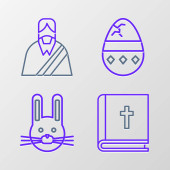 Ikony wielkanocne. zestaw liniowy. zestaw linii wektorowych jakości, takich jak jaja, pisanki, krzyż