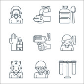 Zdjęcie "ikony linii przesyłu wirusa. zestaw liniowy. wysokiej jakości zestaw linii wektorowych, takich jak mycie, wstrzykiwanie, wyszukiwanie, dezynfekcja rąk, przenoszenie wirusa, medycyna, zawroty głowy, szpital, karetka" może być wykorzystywane do celów osobistych i komercyjnych zgodnie z warunkami zakupionej licencji Royalty-free. Obraz jest dostępny do pobrania w jakości wysokiej rozdzielczości do 5760x3840.