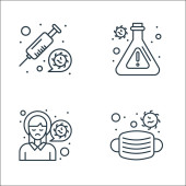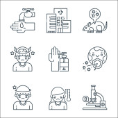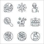 ikony linii przesyłu wirusa. zestaw liniowy. wysokiej jakości zestaw linii wektorowych, takich jak temperatura, mikroskop, szpital
