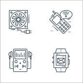 ikony linii urządzeń technologicznych. zestaw liniowy. wysokiej jakości zestaw linii wektorowych, takich jak czat mobilny, przedłużacz, klawiatura