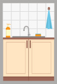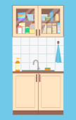 Zdjęcie "Wnętrze kuchni. Szafki kuchenne, piekarnik, kuchenka mikrofalowa i naczynia. Płaska konstrukcja. Ilustracja wektora." może być wykorzystywane do celów osobistych i komercyjnych zgodnie z warunkami zakupionej licencji Royalty-free. Obraz jest dostępny do pobrania w jakości wysokiej rozdzielczości do 5760x3840.