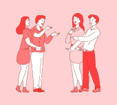 Zdjęcie "Konflikt małżeński. Kreskówka wściekłych mężczyzn i kobiet postacie podczas konfliktu, walki i krzyki. Vector zestaw twardych scen rozmowy" może być wykorzystywane do celów osobistych i komercyjnych zgodnie z warunkami zakupionej licencji Royalty-free. Obraz jest dostępny do pobrania w jakości wysokiej rozdzielczości do 5760x3840.