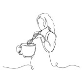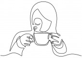 Zdjęcie "Kobieta z filiżanką kawy. Portret liniowy. " może być wykorzystywane do celów osobistych i komercyjnych zgodnie z warunkami zakupionej licencji Royalty-free. Obraz jest dostępny do pobrania w jakości wysokiej rozdzielczości do 5760x3840.