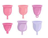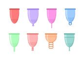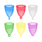 Realistyczny szczegółowy zestaw 3d Color Menstrual Cup. Wektor